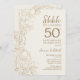 Invitation de célébration d'anniversaire de mariage de 50 ans surprise botanique en or d'ivoire. Design moderne minimaliste avec des accents botaniques et une typographie script. Carte d'invitation florale simple parfaite pour une fête d'anniversaire surprise élégante. Peut être personnalisé pour n'importe quelle année de mariage. Cartes d'invitation Zazzle imprimées ou modèle de template numérique téléchargeable instantanément.