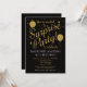 Cette amusante invitation à la fête surprise met en vedette des arrière - plans noirs avec des ballons de parties scintillant en faux or et des étoiles. Il possède une atmosphère élégante et fantaisiste avec un côté élégant. Votre invité d'honneur aime l'invitation surprise de fête d'anniversaire que vous avez choisie pour célébrer leur fabuleux anniversaire. Idéal pour la 21ème 30ème 35ème 40ème 50ème 60ème 65ème 70ème 75ème 80ème 85ème 90ème et tout âge !