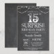 Invitation surprise pour 15 ans avec fond noir et blanc tableau noir. Guirlande lumineuse. Anniversaire d'enfant. Anniversaire garçon ou fille. Pour une personnalisation plus poussée, cliquez sur le bouton "Personnaliser" et utilisez notre outil de conception pour modifier ce modèle.