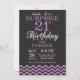 Invitation surprise pour 21e anniversaire avec chevron noir et violet. Tableau noir. Anniversaire adulte. Invitation d'anniversaire pour homme ou femme. Pour une personnalisation plus poussée, veuillez cliquer sur le bouton "Personnaliser" et utiliser notre outil de conception pour modifier ce modèle.