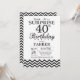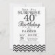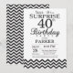 Invitation surprise pour 40 ans avec Chevron noir. Noir et blanc. Anniversaire adulte. Invitation d'anniversaire pour homme ou femme. Pour une personnalisation plus poussée, veuillez cliquer sur le bouton "Personnaliser" et utiliser notre outil de conception pour modifier ce modèle.
