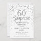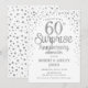 Invitation surprise pour les 60 ans de mariage. Carte d'invitation élégante en blanc avec une police de caractères script argentée et des confettis. Parfait pour une célébration surprise élégante d'anniversaire de diamant