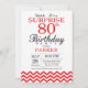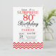 Invitation surprise pour 80e anniversaire avec Chevron rouge. Noir et blanc. Anniversaire adulte. Invitation d'anniversaire pour homme ou femme. Pour une personnalisation plus poussée, veuillez cliquer sur le bouton "Personnaliser" et utiliser notre outil de conception pour modifier ce modèle.