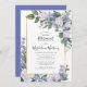 Honore une femme spéciale avec cette invitation élégante et féminine à la retraite. Les détails de la célébration de la retraite sont entourés d'un cadre doré chic décoré de roses blanches et de fleurs bleues. Les éléments floraux sont nichés dans des feuilles verts. Bien qu'il s'agisse d'un design traditionnel, le feuillage botanique ouvert et aéré et le texte lui donnent une ambiance contemporaine. L'invitation en retour est à peine là bleu profond.