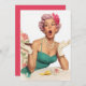 A lively retro-style illustration of a glamorous woman with pastel curls, pearl jewelry, white gloves, and a teal dress. Her wide-eyed, open-mouthed expression adds humor and drama, while floral details and soft painterly textures enhance the vintage charm. Perfect for fun, expressive, and nostalgic product designs.