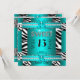 Invitation Sweet 13 Fun Party Zebra Turquoise Blue Ticket 3S