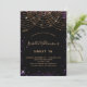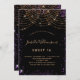 For an elegant Sweet 16, 16th birthday. A stylish black background. Decorated with purple faux gold glitter dust and a golden light strings. Personalize and add a name, age and party details. The name is written with a hand lettered style script