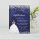 Une invitation moderne, élégante et glamour pour une fête Sweet 16, 16e anniversaire. Un arrière - plan bleu marine avec une fausse parties scintillant, brille, une fille portant une robe de bal. La couleur bleue est inégale. Le nom est écrit avec un script de style moderne écrit à la main. Personnalisez et ajoutez les détails de votre fête.