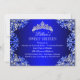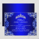 Invitation d'anniversaire Sweet 16 Bleue. Design élégant damassé de perles bleues et couronne argentée. Veuillez noter : Toutes les images plates, elles n'ont pas de vrais bijoux !