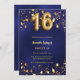 Une invitation moderne et élégante à un Sweet 16. Un arrière - plan bleu marine, décoré d'étoiles dorées. La couleur bleue est inégale. Personnalisez et ajoutez votre nom et les détails de votre fête.
