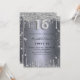 Une invitation moderne, élégante et glamour pour une soirée Sweet 16, 16e anniversaire de fille. Un arrière - plan faux argenté, décoré de poussière de parties scintillant. Personnalisez et ajoutez votre nom et les détails de votre fête. Le numéro 16 est écrit avec une police de style ballon, script.