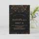 Pour un élégant Sweet 16, 16e anniversaire. Un arrière - plan noir élégant. Décoré avec une parties scintillant en faux or et des cordes lumineuses dorées. Personnalisez et ajoutez un nom, un âge et des détails de la fête. Le nom est écrit avec un script de style manuscrit