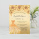 Une invitation moderne, élégante et glamour pour une fête Sweet 16, 16e anniversaire. Un arrière - plan faux or avec de la poussière de parties scintillant faux or, une robe et des roses, des fleurs. Le nom est écrit avec un script de style moderne écrit à la main. Personnalisez et ajoutez les détails de votre fête.