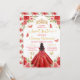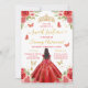 Celebrate her milestone in style with this elegant Sweet 16 invitation featuring an African American girl in a sparkling red ball gown, viewed gracefully from the back. Surrounded by soft florals, fluttering butterflies, and a regal golden crown, the design blends youthful charm with royal sophistication. The color palette includes bright red, shimmering gold, and soft leafy greens—perfect for spring or summer celebrations. Ideal for princess-themed parties, this invitation sets a magical tone for an unforgettable evening.