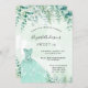 Une invitation branchée pour une Sweet 16, 16ème anniversaire fête, thème forestier enchanté. Un arrière - plan vert à l'eau avec des fougères et de la verdure d'eucalyptus, une robe verte. Le nom est écrit avec un script de style moderne écrit à la main. Personnalisez et ajoutez les détails de votre fête.