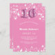 Un arrière - plan rose. Décoré d'étoiles blanches. Texte blanc. Personnalisez et ajoutez un nom et des détails du parti.