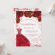 Une invitation moderne, élégante et glamour pour une fête Sweet 16, 16e anniversaire. Un arrière - plan blanc aux étincelles, une robe rouge et des roses rouges, des fleurs. Le nom est écrit avec un script de style moderne écrit à la main. Personnalisez et ajoutez les détails de votre fête.
