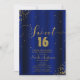Invitation SWEET 16 Seize Coins Royaux Bleu Or Confettis