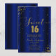 SWEET 16 Seize Coins Royaux Bleu Or Confettis Invitations.