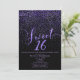 SWEET 16 Seize Confettis Modernes Violet & Noir Cartes d'Invitation.