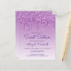 Cette invitation de fête d'anniversaire Sweet Sixteen tendance présente une bordure de faux glitter violet scintillant et un fond ombré violet. Les mots "Sweet Sixteen" et le nom de l'invité d'honneur apparaissent dans un script d'écriture manuscrite violet décontracté, le reste du texte personnalisable étant en police sans empattement. Le même design de goutte de glitter violet apparaît au verso.