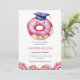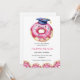A sweet and playful donut-themed graduation party invitation featuring a pink watercolor design and a charming blue graduation cap.
