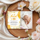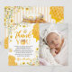 Express your thanks with a personal touch using this bee-themed photo thank you card. Combine a favorite photo from the 1st birthday with our charming watercolor bee and honey jar illustrations. This card serves as a sunny memento for family and friends to remember the "bee-day" celebration. A warm and sophisticated way to show appreciation while showcasing a special moment of your little honey.