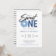 C'est une invitation de Sweet One, 1er anniversaire. Belle beigne bleue, design tendance de typographie bleue et noire. Le dos de la carte comporte la coordination du motif rayé noir.