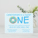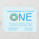 Sweet one donut boy première invitation anniversaire avec beigne mignonne et pastel bleu rayé arrière - plan