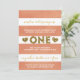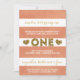 Cette douce invitation de fête de premier anniversaire de The Spotted Olive™ présente des rayures de pêche audacieuses avec le mot "ONE" et un coeur de chaque côté rempli d'une image de parties scintillant. VEUILLEZ NOTER : CE DESIGN NE COMPORTE QU'UNE IMAGE DE PARTIES SCINTILLANT. AUCUNE PARTIES SCINTILLANT RÉELLE N'EST UTILISÉE OU INCLUSE. IL S'AGIT D'UN DESIGN IMPRIMÉ PLAT. IL N'Y A PAS D'EMBELLISSEMENTS. Copyright ©2014 The Spotted Olive™ | Tous droits réservés