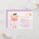Invitation d'anniversaire à thème ballerine personnalisée en rose et or avec dos rose et violet étoilé. Doté d'une ballerine de fée dans un joli tutu rose, simulait des ailes d'or brillant et des ballons roses. Doux, girly, chic et élégant. Il est doté d'une conception avant et arrière. Personnaliser avec nom, âge et détails du parti. Options d'image Ballerina disponibles. Idéal pour ballet ou fée à thème.