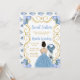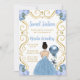 Cette invitation sweet sixteen présente un cadre doré élégant, une belle princesse aux cheveux bruns et une robe bleue poussiéreuse, des fleurs et un ballon. C'est parfait pour une fête d'anniversaire en sweet sixteen.