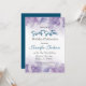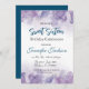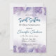 L'invitation à l'anniversaire de la lavande de Sweet sixteen et aux fleurs violettes est un design visuellement captivant et élégant qui donne le ton d'une fête joyeuse et mémorable. La combinaison des teintes lavande et violette crée une palette de couleurs harmonieuse, avec des teintes variées qui vont des lavandes plus légères aux violets plus profonds. Ce jeu de couleurs insuffle profondeur, richesse et une touche de régalité à l'invitation, parfaitement adaptée au jalon du Sweet sixteen. Le point central de l'invitation est le texte "Sweet sixteen" de premier plan, magnifiquement rendu dans une élégante police bleue, attirant l'attention sur la signification de l'occasion. L'invitation fournit des détails essentiels de manière claire et lisible, y compris la date, l'heure, les détails RSVP et l'emplacement de la célébration. Dans l'ensemble, la lavande de Sweet sixteen et l'invitation à la floraison violette captive par son décor délicat de lavande et de blanc, ses motifs floraux complexes et sa typographie élégante. Il combine sans effort la beauté, la féminité et la célébration, préparant le terrain pour une fête d'anniversaire mémorable pour le Sweet sixteen
