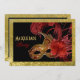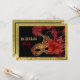 Masquerade Sweet sixteen rouge, invitation fausse feuille d'or, avec un rouge vénitien, masque d'or avec plumes rouges et de petites fleurs sur arrière - plan noir avec une bordure dorée de faux feuille d'or à la texture émiettée. Un design modèle parfait pour votre doux bal mascarade de 16 ou la fête de Mardi Gras bal masque masque masque. Notez qu'il n'y a pas de véritable feuille d'or, masque ou plumes, mais ils sont tous "imprimés sur" des images.
