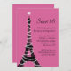 Des lumières scintillantes mettent l'accent sur la Tour Eiffel sur cette Invitation de Sweet sixteen d'inspiration parisienne. Si d'autres éléments de coordination sont nécessaires pour votre parti, contactez-nous à prettyfancyinvites@gmail.com avec votre demande.