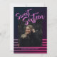 Fêtez un anniversaire marquant dans le style avec notre Sweet sixteen Pink Neon Parties scintillant Anniversaire Invitation de fête. Cette élégante invitation présente de luxueuses rayures roses sur un arrière - plan noir élégant, créant un look festif et sophistiqué. L'avant de l'invitation présente un grand "Sweet sixteen" écrit dans une belle écriture manuscrite, accompagné d'une photo. Au contraire, vous trouverez tous les détails essentiels de l'invitation. Le design est à la fois élégant et impeccable, ce qui le rend parfait pour une célébration mémorable. De plus, le texte est entièrement personnalisable, vous permettant de personnaliser chaque détail pour correspondre à votre partie unique.