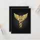 Symboles caducee polygonaux en or sur fond noir isolé. Symbole low poly de médecine.