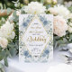 Set a sophisticated tone for your special day with this modern romantic design, blending soft blues, elegant swans, and geometric luxury for a timeless look.
