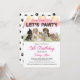 "Venez, courez, jouons Pawty". Invitation-les à l'anniversaire de votre animal de compagnie précieux avec ces invitations à la fête de chiot avec chiots, casquettes de fête et ballons. Les mots "Let's Pawty" sont dans un texte empreinte de patte amusant. Utilisez les modèles fournis pour les personnaliser avec l'âge, le nom et les détails de votre fête. Vous pouvez également changer les couleurs de texte rose et/ou noir en vos couleurs préférées. Un mignon motif empreinte de patte noir orne le dos de la carte.