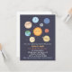 Une mignonne invitation de baby shower sur le thème de l'espace avec des illustrations mignonnes du soleil et des planètes, Mercure, Vénus, Terre, Mars, Jupiter, Saturne, Uranus, et Neptune du système solaire. Une invitation colorée aux invités invitations pour fêter avec maman pour être. Personnalisez facilement avec vos détails de baby shower dans les modèles de texte fournis.
