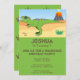 Une invitation amusante à la fête d'anniversaire avec un thème dinosaure. L'architecture présente un T-Rex féroce dans un paysage aride avec un volcan en éruption lointain. Le Tyrannosaure est vert avec des marques violettes. Toute la formulation peut être entièrement personnalisée avec les détails de la troisième fête d'anniversaire de votre enfant. Le thème est lié avec un motif d'empreinte de dinosaures à l'envers du invitation.