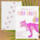 Invitation T-Rex Rose Quatre-Asaur Dino Quatrième fête d'anni