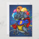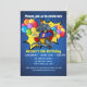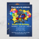 Le super-héros T-Rex portant un casquette d'anniversaire est entouré d'une explosion colorée de confettis. Cool cadeau de 5ème anniversaire pour votre enfant de cinq ans. Personnalisez et ajoutez le nom de votre enfant et les informations de votre parti.