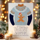 Préparez-vous à une célébration festive et amusante avec cette invitation de soirée pour un pull de Noël laid en forme de bonhomme en pain d'épices. Avec une illustration d'un pull laid bleu marine orné d'un bonhomme en pain d'épices joueur, cette invitation donne le ton parfait pour votre réunion de vacances. Le design fantaisiste et les couleurs festives en font un élément idéal pour répandre la joie des fêtes et inviter les amis et la famille à se joindre à la fête. Personnalisez les détails pour créer une invitation unique et mémorable pour votre soirée pull de Noël.