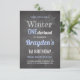 L'invitation pour la première fête d'anniversaire de ce garçon "Winter Onederland" présente de subtils flocons de neige gris sur un arrière - plan de tableau noir. Personnalisez avec le nom de votre petit garçon et les détails de la fête en bleu et blanc. Le verso comporte un motif de flocon blanc sur un arrière - plan bleu. Consultez nos collections pour les articles correspondants.
