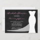 Cette belle invitation à la douche nuptiale présente une robe nuptiale blanche avec un train semi-transparent sur un arrière - plan en damier noir. Cette invitation à la douche nuptiale est parfaite pour l'utilisation avec n'importe quel jeu de couleurs car vous pouvez changer le libellé rose à la couleur de votre choix en cliquant sur customiser, puis cliquez sur la ligne qui vous intéresse pour changer la couleur de, puis cliquez sur couleur et sélectionnez votre couleur. Une grande invitation à la douche nuptiale. Copyright henishouseo