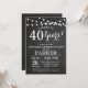 Surprise 40e anniversaire Invitation Arrière - plan de tableau de bord avec String Lights. Noir et Blanc. 13e 15e 16e 18e 20e 21e 30e 40e 50e 60e 70e 80e 90e 100e, n'importe quel âge. Anniversaire adulte. Fête d'anniversaire de femme ou d'homme.