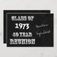 Vous pouvez célébrer votre 40ème réunion de classe du lycée dans le style vintage cette année avec une invitation à la réunion de tableau à roulettes 40 ans. Cette invitation comporte un tableau de bord pour les mots "Classe de (année) Réunion de 40 ans". Vous pouvez customiser le nom de votre lycée et il aura l'air qu'il est écrit sur un tableau de bord en script. Le verso de l'invitation vous permet de customiser avec tous les détails de votre réunion de 40e classe. Copyright henishouseo