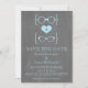 Chic et sexy Geeky Glasses Chalkboard Enregistrer la date Annonce en bleu clair avec un coeur mignon flanqué de deux paires de lunettes de cheville, une paire de manly et une paire de poutres représentant le marié et la mariée sur un arrière - plan de tableau noir. Cette offbeat save the date invite est parfait pour annoncer votre mariage geek! Facile à customiser, il suffit d'ajouter les détails de votre mariage dans les champs de texte fournis. Cliquez sur le bouton "Customiser" pour trouver d'autres options de personnalisation.