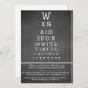 Nous avons dit "Je le veux" maintenant il est temps de faire la fête est écrit de manière unique, amusante et originale sur une invitation de fête après le mariage, réception uniquement. Les invités adoreront l'originalité de notre version du tableau de Snellen transformé en invitation de fête après le mariage qui est facilement personnalisable en utilisant le modèle fourni. Si vous avez des questions ou des demandes spéciales, envoyez simplement un e-mail à zazzleinvites@gmail.com.